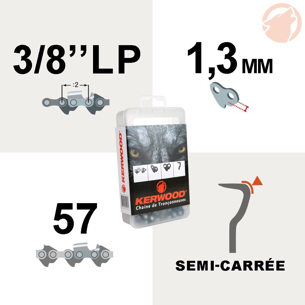 Chaîne de tronçonneuse - 3/8"LP - 1,3 mm - 57 maillons - semi carrée - KERWOOD