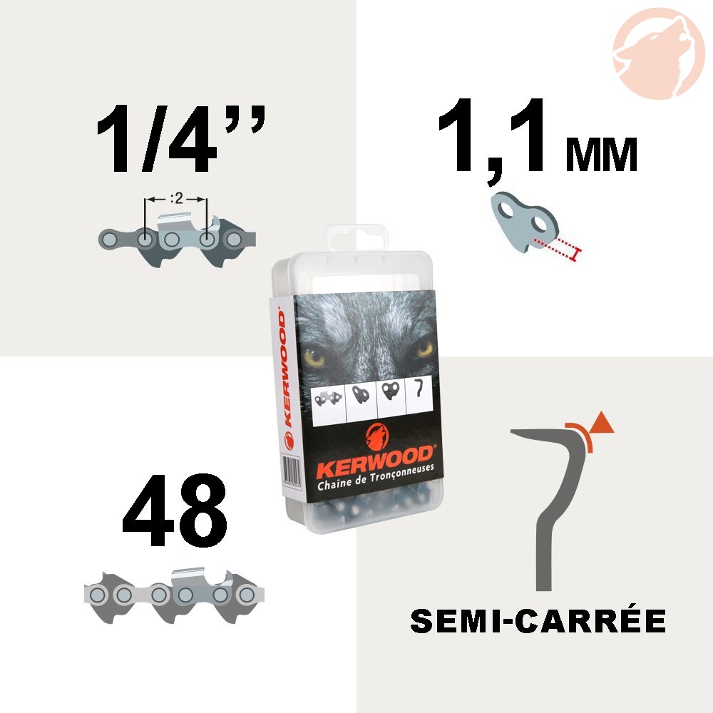 Chaîne de tronçonneuse - 1/4" - 1,1 mm - 48 maillons - semi carrée - KERWOOD